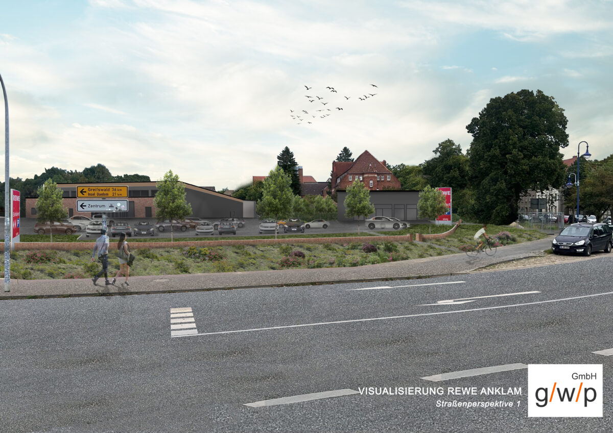 Mit dem Neubau des REWE-Marktes an der Leipziger Allee / Demminer Straße in Anklam entstand ein funktionaler Handelsbau, der den Standort klar ordnet und die Nahversorgung im Umfeld stärkt. Das Gebäude wurde als besonders energieeffizientes Green Building realisiert und ressourcenschonend errichtet. Wir unterstützten den Bauherrn sowie den Generalunternehmer bei Planungsleistungen und wünschen dem eröffneten REWE alles Gute.